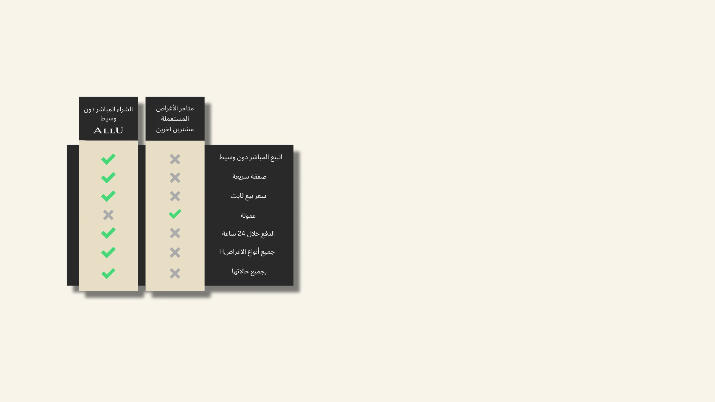 - نشتري السلع بجميع حالاتها، سواء كانت جديدة أم مستعملة، سليمة أم مكسورة